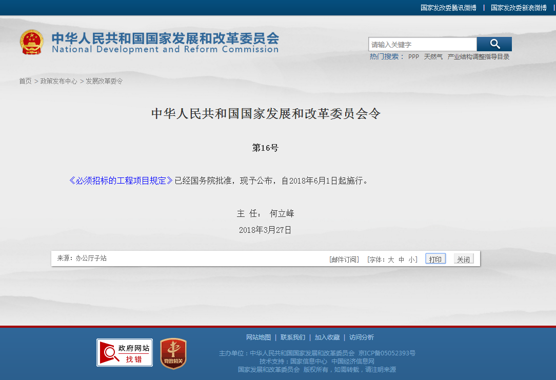 《必須招標(biāo)的工程項(xiàng)目規(guī)定》已經(jīng)國務(wù)院批準(zhǔn),現(xiàn)予公布,自2018年6月1日起施行。