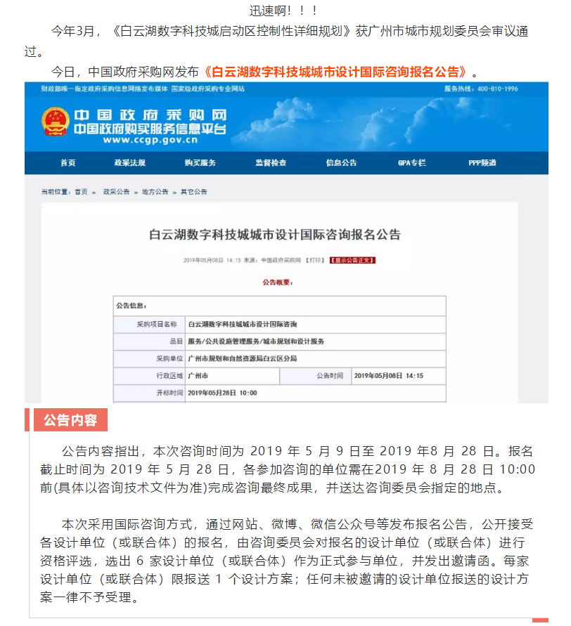 重磅!白云湖數字科技城城市設計啟動在即!面向全球招募設計單位