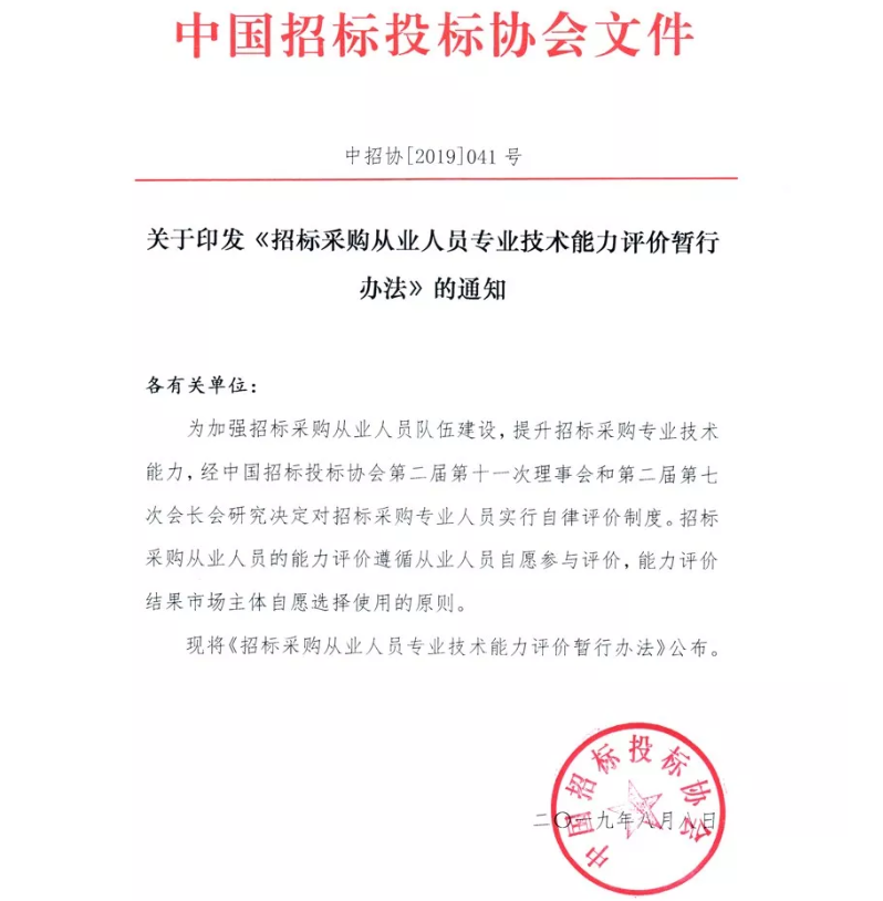 第十條 通過(guò)招采人員能力評(píng)價(jià)的人員,頒發(fā)中國(guó)招標(biāo)投標(biāo)協(xié)會(huì)用印的電子版《招采人員*級(jí)能力評(píng)價(jià)證書》(以下簡(jiǎn)稱《評(píng)價(jià)證書》)。獲得《評(píng)價(jià)證書》的人員,表明其已具備中國(guó)招標(biāo)投標(biāo)協(xié)會(huì)認(rèn)可的相應(yīng)級(jí)別的招標(biāo)采購(gòu)專業(yè)技術(shù)能力。